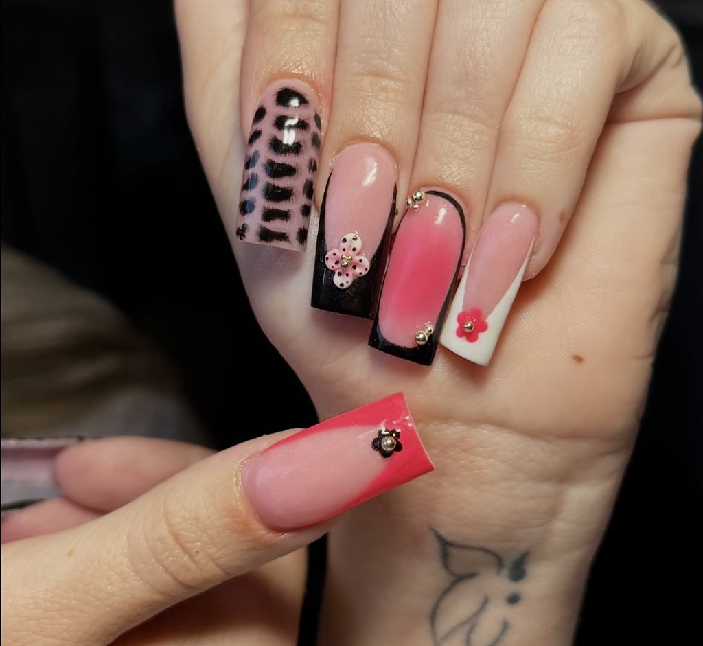 Basic Set Includes: Acrylic prep, application, shaping, design, cuticle oil.